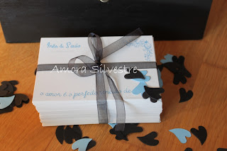 As imagens que vêem são de uma encomenda. Pediram-me uma caixa de honra com 150 cartões personalizados. Gastei material e tempo... o casamento é já este sábado e continuo a ter a caixa de honra em minha posse, sem qualquer explicação há mais de uma semana, pois imprevistos acontecem a qualquer um!